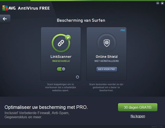 Let je bij de installatie niet goed op dan staat er zomaar een proefversie van AVG Pro op je pc in plaats van AVG Free. Met de betaalde versie ben je wel beter beschermd want die beschermt ook tegen schadelijke downloads, spam en phishing, kan bestanden versleutelen en heeft een eigen firewall. AVG Free is beperkt tot het blokkeren van malware, het scannen van links op webpagina's inclusief Twitter en Facebook en het scannen van schadelijke e-mailbijlagen. Lees ook: Dossier Antivirus.