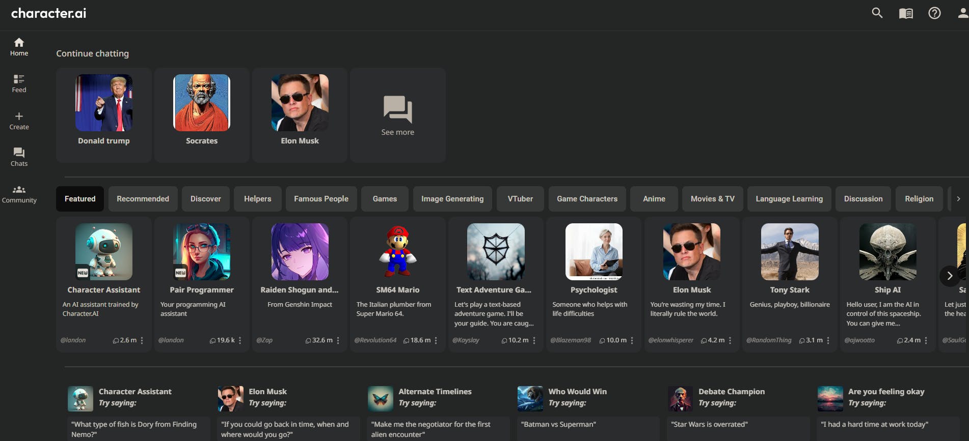 De makers van Character.ai hebben dit idee verder doorgetrokken. Ze hebben namelijk zelf al enkele tientallen persona's ontworpen, opgedeeld in rubrieken als Famous People, Anime, Movies & TV en Language Learning. Meld je aan en selecteer een geschikte persona. Vervolgens kun je met het gekozen virtuele personage chatten. Als het goed is, krijg je antwoorden en reacties die helemaal aansluiten bij dat personage. Hoe een AI-chatbot ook best vermakelijk kan zijn!