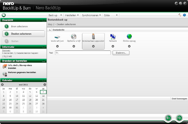 Nero BackItUp & Burn ondersteunt behalve optische media ook alle andere opslagmedia.