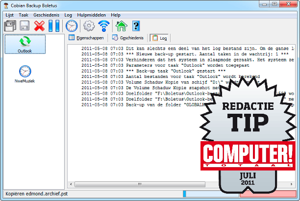 Tijdens een back-up is in het programmavenster te zien wat er gebeurt.