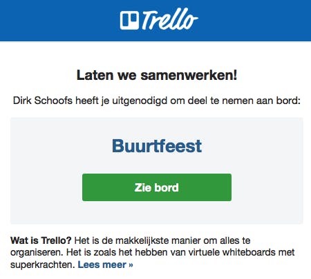 Een pijnpunt bij groepsprojecten is de tsunami aan e-mailberichten omdat alle medewerkers elkaar voortdurend in de ‘cc’ zetten. Met Trello voorkom je zo’n onoverzichtelijke e-mailstroom. De toegevoegde leden aan een lijst of kaart zullen meldingen ontvangen wanneer er iets met de kaart gebeurt. De reacties verschijnen op de achterkant van de kaart. Alle reacties krijgen een tijdstempel dat als referentie kan dienen. Wanneer je in een reactie iemands naam noemt voorafgegaan door @, dan krijgt de betreffende persoon ook een melding. Je kunt trouwens instellen of je de meldingen onmiddellijk, periodiek of nooit wilt ontvangen.