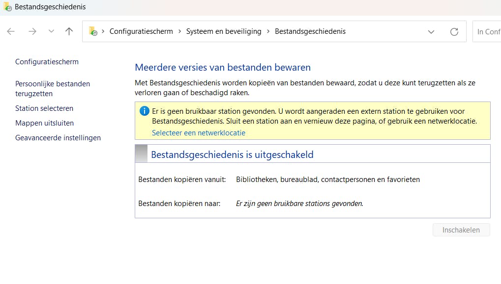 In Windows activeer je daarvoor Bestandsgeschiedenis via Configuratiescherm / Systeem en beveiliging / Inschakelen. Op macOS gebruik je Time Machine en kies je de ssd als doel.