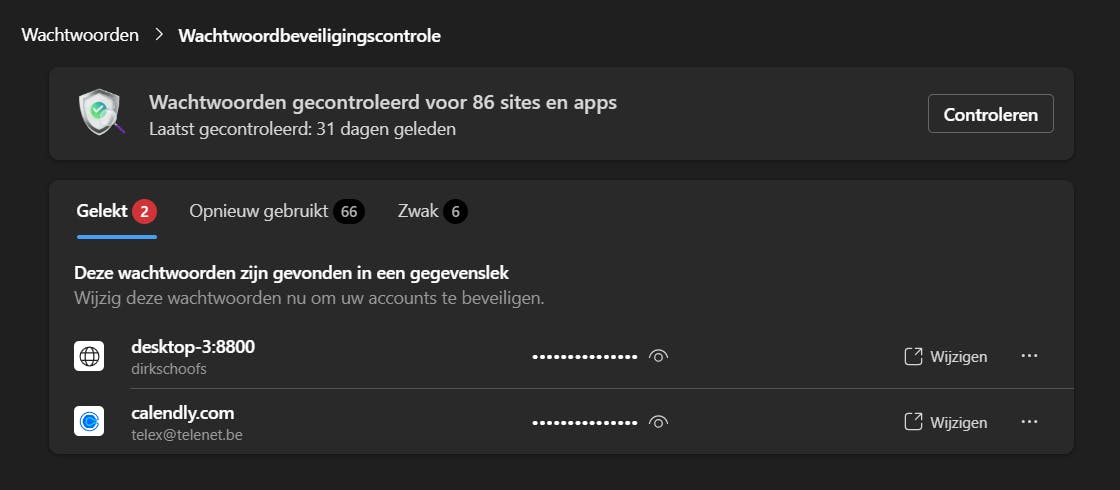 - Bekijk of er zwakke of gelekte wachtwoorden zijn