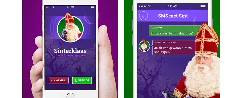 Zo kan in de app aangegeven worden of de Sint gebeld wordt door een jongen of een meisje, hoe oud hij of zij is en wat het favoriete speelgoed is. Op basis van die informatie krijgt ieder kind een 'persoonlijke' boodschap van Sinterklaas, telefonisch of via een chatgesprek. Vorig jaar schoot de app op 5 december in elk geval naar de bovenste plek in de downloadranglijsten van Android en iOS.