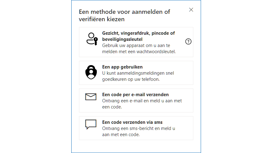 Ook Microsoft laat je uit diverse tweede-factoren kiezen.
