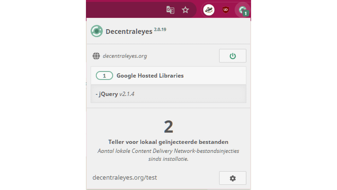 Wanneer je een grotere site bezoekt, maakt je browser geregeld verbinding met Content Delivery Networks (CDN’s) om gemeenschappelijke JavaScript-bibliotheken en andere bronnen te laden. Hierdoor kunnen CDN’s je activiteiten volgen. Decentraleyes biedt onder meer populaire Javascript-bibliotheken, zoals jQuery en AngularJS, lokaal en op de achtergrond aan je browser aan, zodat externe servers niet worden gecontacteerd. Dit verhoogt je privacy en verkort de laadtijd van websites. Een teller houdt het aantal onderschepte aanroepen bij. Je kunt dit testen op www.decentraleyes.org/test.