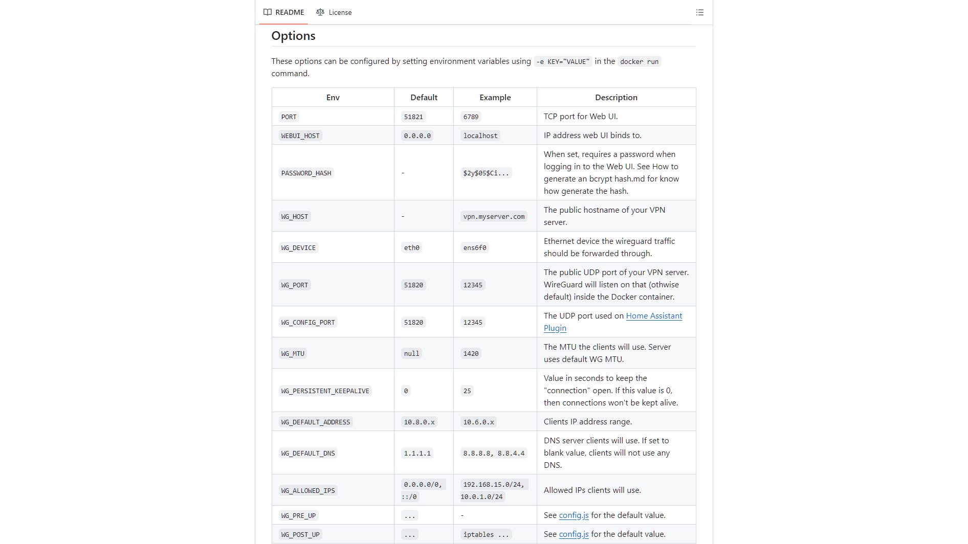 Noteer ook de poorten die door WireGuard worden gebruikt: 51820 (poort voor inkomende VPN-verbindingen) en 51821 (poort voor het lokale dashboard). Uit veiligheidsoverwegingen zou je eventueel de luisterpoort voor inkomende connecties kunnen aanpassen. Dat doe je bijvoorbeeld als volgt: - “55555:51820/udp”. De eerste, gewijzigde poort is namelijk de externe poort. De tweede poort is de interne poort die WireGuard zelf gebruikt en deze moet zo blijven. Er zijn nog heel wat andere instelbare parameters, maar deze kun je in principe ongewijzigd laten.