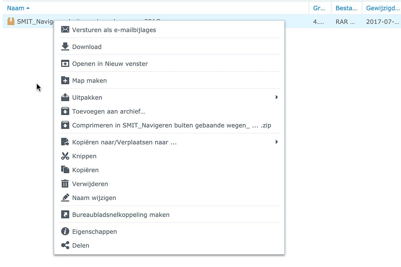 Een bestandsbeheerder a la de Windows Verkenner of Finder in Mac op een NAS, is dat zinvol? Je kunt die bestanden en mappen op de NAS immers ook bereiken als netwerkshare via de bestandsbeheerder op je computer. Toch heeft een lokaal op de NAS draaiende bestandsbeheerder zeer zeker nut. Ga je bijvoorbeeld grote kopieer of unzip-acties uitvoeren en doe je dat op je pc of laptop, dan zit je te wachten tot de operatie(s) klaar zijn. Geef je dezelfde taak aan de NAS, dan kun je als het proces eenmaal gestart is uitloggen en wat anders gaan doen. Ook komt een lokale browser prima van pas als je aan bestandsbeheer op je NAS vanaf je smartphone of tablet wilt gaan doen. In dat geval zou bijvoorbeeld een grote zip- of unzip-actie niet alleen veel tijd kosten, maar vooral ook een aanslag op de accu betekenen als je dat klusje lokaal op je telefoon laat draaien. In het geval van Synology NASsen kun je een bestandsbeheerder op de in een browser draaiende desktop gebruiken. Klik op File Station, veelal te vinden op het bureaublad of in het startmenu. Het werkt eigenlijk allemaal net zoals je van de Windows Verkenner gewend bent. Kies een map links en blader naar een bestand. Om bijvoorbeeld een bestand te unzippen klik je er met de rechter muisknop op, gevolgd door een klik op Uitpakken. Ook kun je mappen en bestanden zippen door er met de rechter muisknop op te klikken en dan te kiezen voor Toevoegen aan archief. Het is zelfs mogelijk het zipje te beveiligen met een wachtwoord. Verder beschikt File Station over een viewer voor diverse bestandsformaten, waaronder afbeeldingen. Heb je eenmaal een grote (un)zip- of kopieer actie in gang gezet, dan hoef je niet te blijven wachten op het resultaat. Gewoon uitloggen en lekker gaan slapen; de volgende ochtend heeft je NAS alles voor je geregeld.
