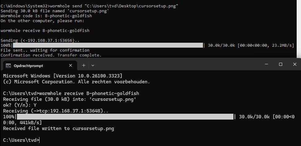 - Gebruik Magic Wormhole om eenmalig bestanden te versturen