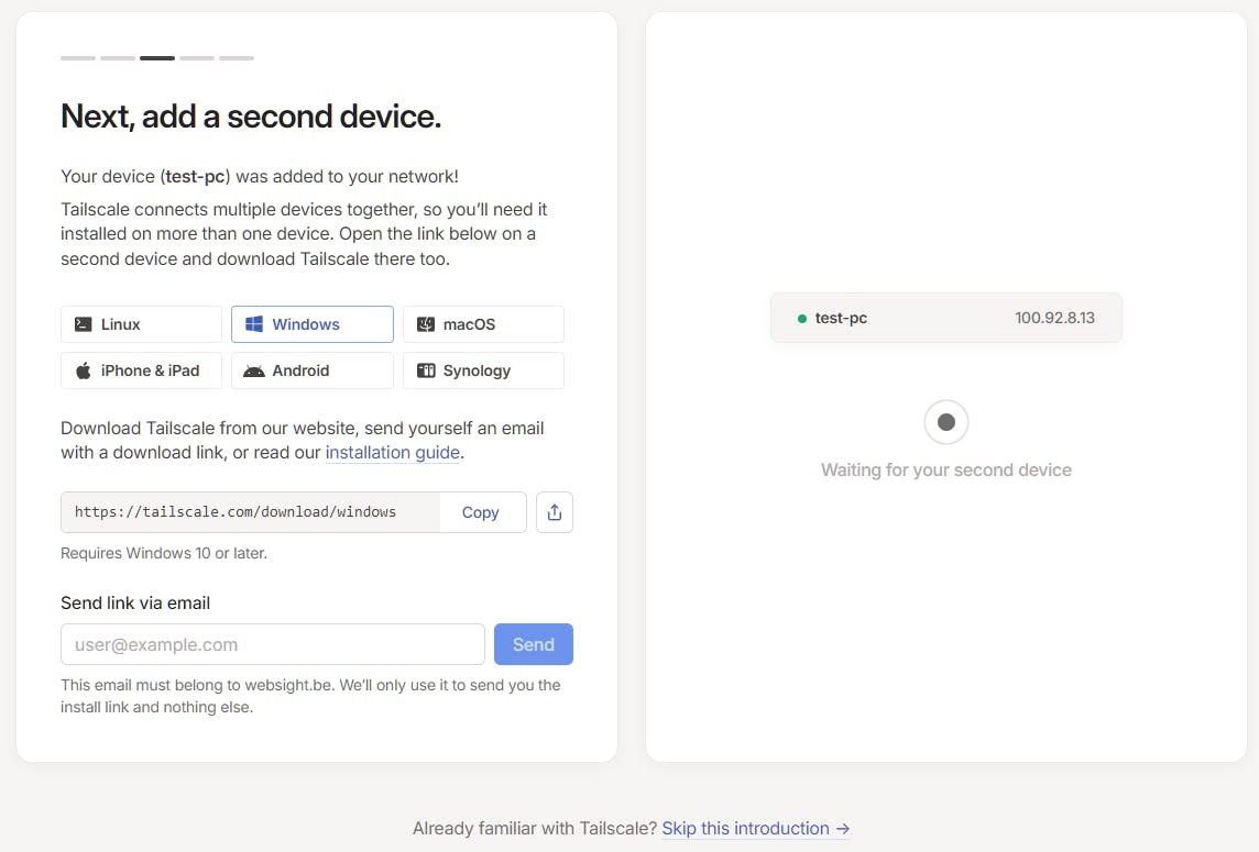 Het eerste apparaat is aan het Tailscale-VPN-netwerk toegevoegd.