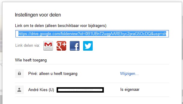 In het geopende menu Instellingen voor delen kun je precies bepalen wie toegang krijgt tot de gekozen map. Allereerst kan dat dat de link te kopiëren en delen die te vinden is onder Link om te delen. Kijk in het menu naar Privé: alleen u heeft toegang en klik daarachter op Wijzigen. je kunt hier kiezen om de bestanden te delen met iedereen die de link van je ontvangt, iedereen op het web of specifieke mensen. Kies je favoriete optie en druk op Opslaan. Onder in het menu kun je e-mailadressen invoeren onder mensen uitnodigen. Iedereen die je mailt krijgt toegang tot je map als je gekozen hebt voor Specifieke mensen. Naast deze balk staat de optie Mag bewerken. Als je niet wilt dat een ander aan de gegevens sleutelt, dan klik je hierop en verander je deze instelling naar Mag weergeven. Druk op Verzenden en vervolgens op Gereed. Je hebt nu je bestanden gedeeld.