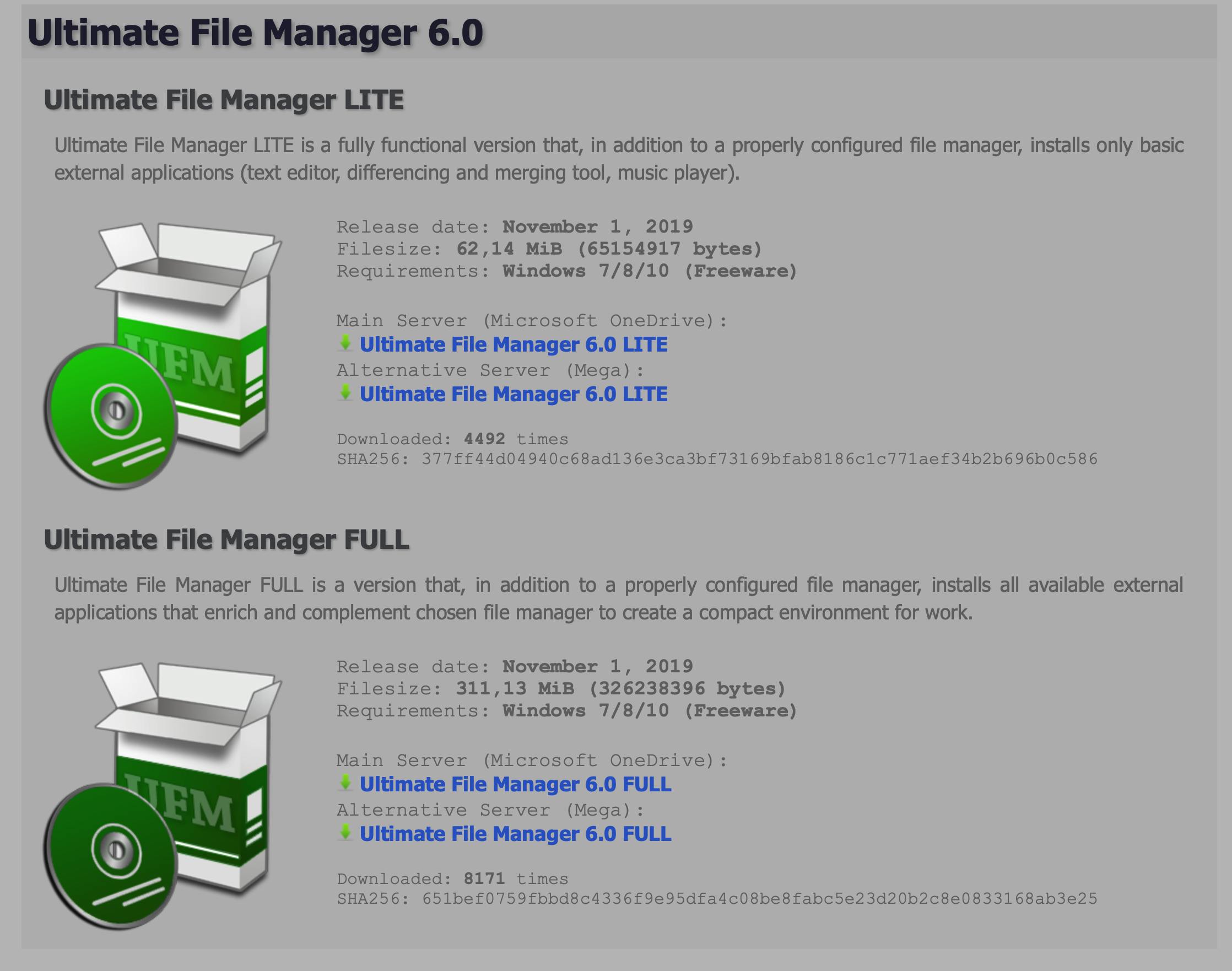 Voor wie iets anders wil dan Windows Verkenner is er een ruim aanbod aan alternatieve software voor bestandsbeheer. Met bijvoorbeeld Ultimate File Manager heb je in één download een pakket op elkaar afgestemde applicaties. Voordat je aan de slag kunt, moet je een aantal keuzes maken, te beginnen bij de download. De laatste versie, Ultimate File Manager 5.9, dateert van 1 oktober 2019, maar je zult zien dat de applicaties in het pakket al heel lang hun sporen hebben verdiend. Op de downloadpagina kies je tussen de lite- of full-versie. In de eerste (60 MB) heb je een file manager en drie freeware-tools. Het full-pakket (309 MB) heeft een breed assortiment aan bekende freeware-titels om video te converteren, screencasts te maken, een calculator, een wachtwoordmanager enzovoort …