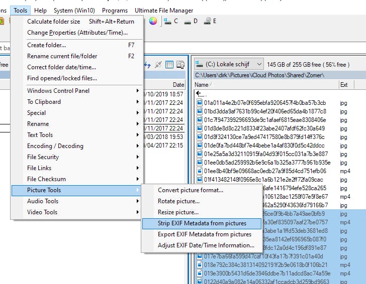 Omdat je de plug-ins hebt geïnstalleerd beschik je in het menu Tools over functies om afbeeldingen, audio en video aan te passen. Zo kun je vanuit Multi Commander afbeeldingen roteren en omzetten in een ander grafisch formaat zoals jpg, gif, bmp, png of tiff. Je kunt rechtstreeks alle metadata strippen zodat men bijvoorbeeld geen informatie meer leest over de locatie of het tijdstip waarop de foto’s zijn genomen.