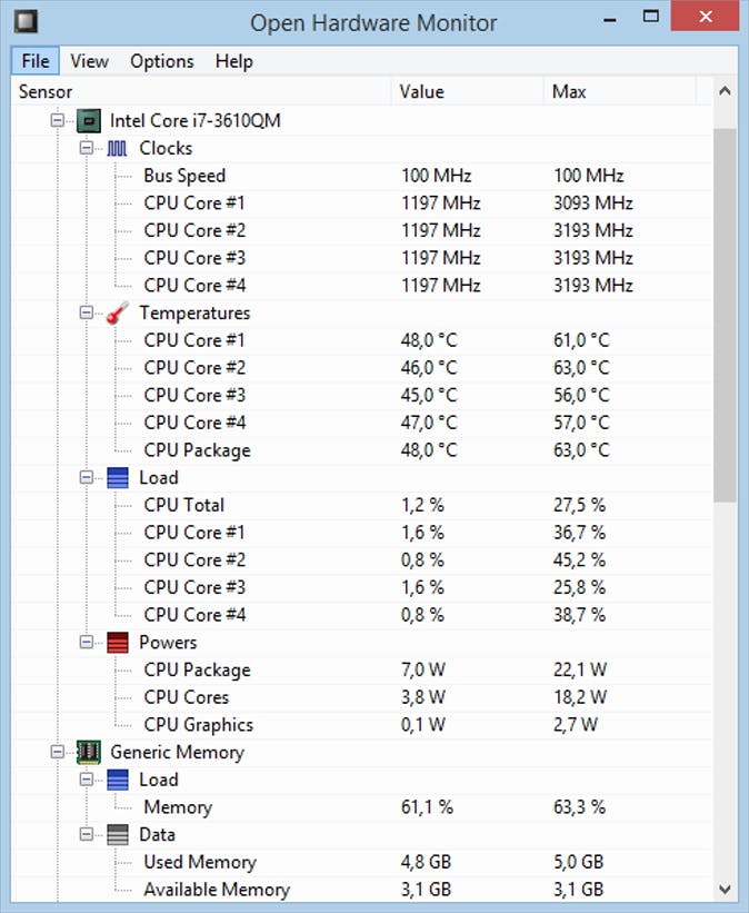 Je computer heeft net als je auto allerlei sensors om informatie uit te lezen van onderdelen. De informatie is standaard verborgen, maar met Open Hardware Monitor maak je de gegevens snel inzichtelijk. Je ziet bijvoorbeeld de temperatuur van onderdelen als je processor en harde schijf. Ook de voltages worden getoond en je kunt de processorsnelheid aflezen. Het uitlezen van je sensors is leuk voor de nerds onder ons, maar ook handig als je bijvoorbeeld een zelfbouwsysteem hebt. Dankzij Open Hardware Monitor kun je controleren of je systeem voldoende wordt gekoeld. Dit geldt ook voor stille media-pc's op de tv die je misschien hebt opgeborgen in een kast.