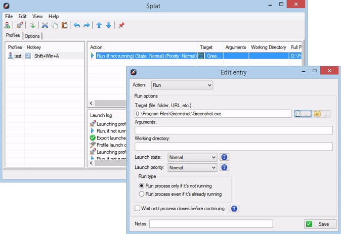 Splat maakt actieprofielen aan, zodat je in één keer diverse programma's en/of locaties kunt openen.