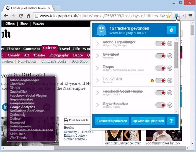 Tip 01 Ghostery blokkeert tijdens het internetten zo veel mogelijk diensten en 'agenten' van reclamenetwerken.