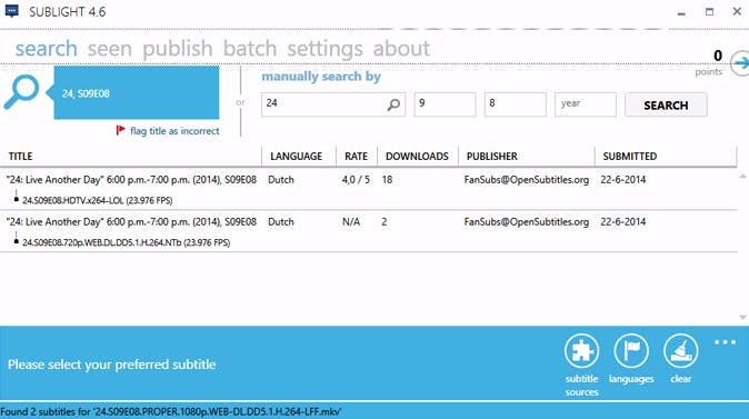Tip 07 Sublight zoekt, vindt en downloadt de juiste ondertiteling vanuit één programma.