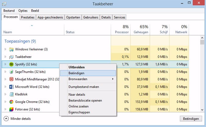 Als een programma vastloopt en niet meer reageert, kun je met Windows Taakbekeer (Ctrl+Shift+Esc) het programma geforceerd afsluiten. Dankzij het programma SuperF4 kun je vastgelopen programma's sneller afsluiten. SuperF4 biedt een variatie op een bestaande toetscombinatie. Met Alt+F4 geef je een programma opdracht om zichzelf netjes af te sluiten. Dit is vergelijkbaar met het bekende kruisje. SuperF4 maakt de toetscombinatie Ctrl+Alt+F4 mogelijk. Hiermee wordt het programma dat je op dat moment voor je neus hebt in één klap uitgeschakeld. SuperF4 is ook handig om programma's als Skype en Spotify volledig uit te schakelen. Dit zijn twee bekende programma's die de regel 'op het kruisje klikken, sluit het programma af' aan hun laars lappen. Wees wel voorzichtig met de toetscombinatie bij programma's als Photoshop of Word. Geopende documenten worden namelijk niet bewaard.