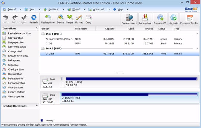 Tip 17 Easeus Partition Master Free helpt bij het (achteraf) indelen van je harde schijf.