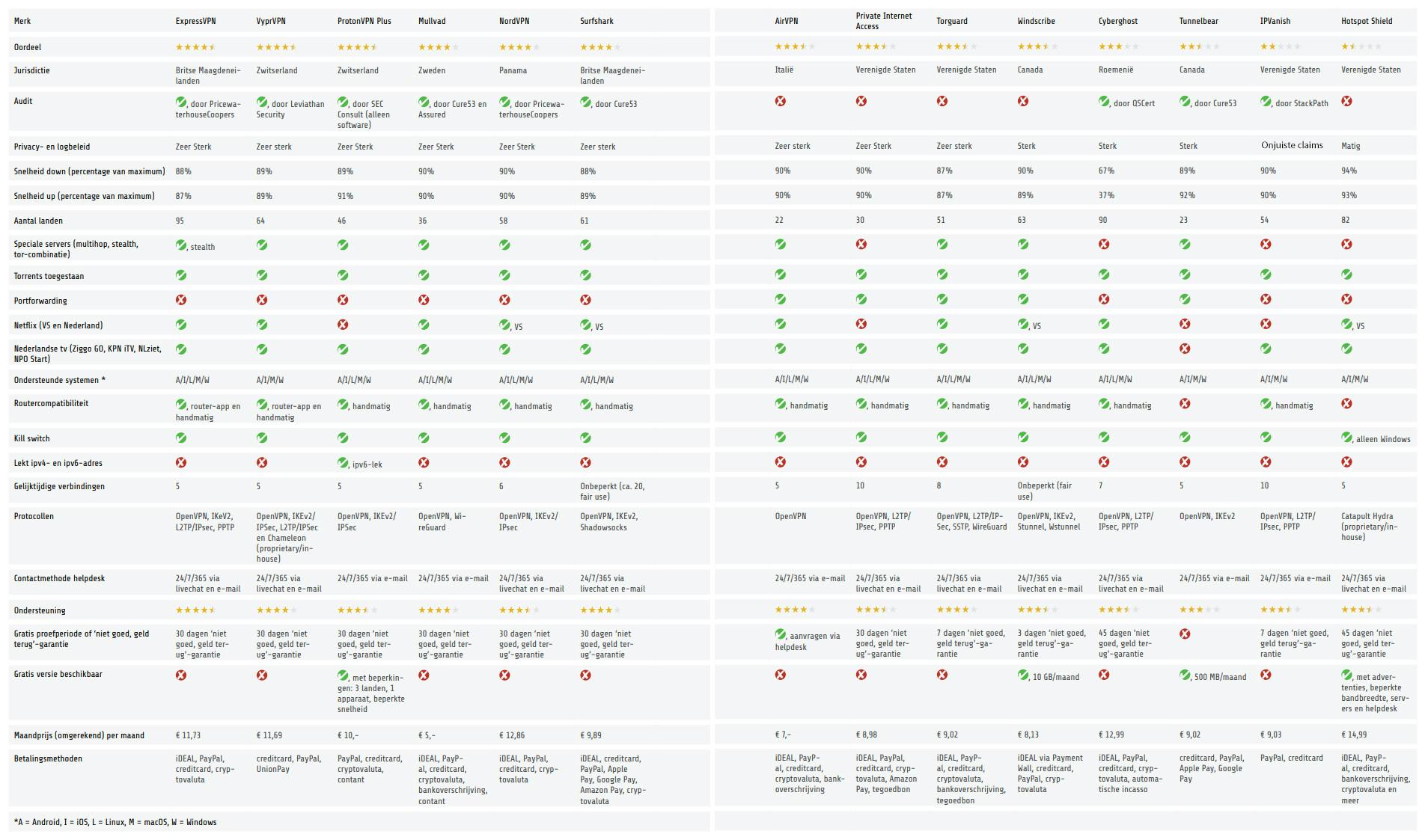 VyprVPN is een zeer complete vpn-dienst die door veel Nederlanders over het hoofd gezien wordt. Dat komt voornamelijk doordat je VyprVPN niet met iDEAL kunt betalen. Toch levert VyprVPN een goede vpn die standaard veel opties biedt: de beste kill switch uit deze test die je zelfs op systeemniveau kunt instellen, dus ook als de VyprVPN-app zou crashen, is je eigen ip-adres beschermd tegen blootstelling. Standaard gebruikt deze vpn een eigen dns-netwerk, maar je kunt ook een aangepaste dns instellen via de app om het privacyrisico te spreiden over meerdere partijen.