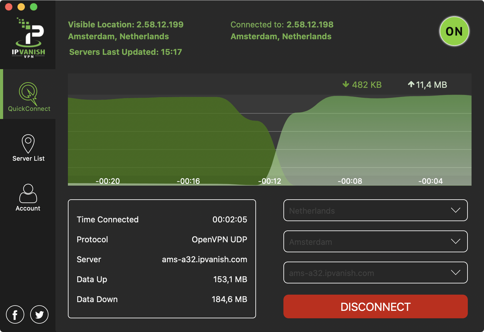 Wisselen van server gaat makkelijker dan bij veel andere vpn’s. Mullvad verbreekt dan automatisch de verbinding met de huidige server en maakt verbinding met de nieuwe server zonder tussenkomst van de gebruiker. Mullvad verkleint daarmee de kans aanzienlijk dat je eigen ip-adres per ongeluk blootgesteld wordt. Naast OpenVPN kun je bij Mullvad als een van de weinige aanbieders gebruikmaken van het experimentele WireGuard-protocol.