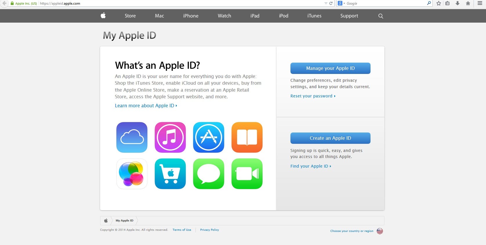Ga naar de website appleid.apple.com, en klik daar op de grote knop 'Manage your Apple ID'. Overigens kun je rechts beneden de regio veranderen naar Nederlands, als je dat prettiger vindt. Deze workshop is verder in het Engels geschreven.