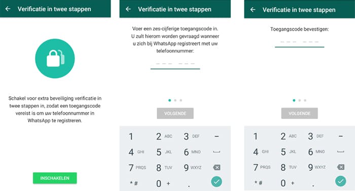 Wanneer je WhatsApp de eerste keer installeert, moet je al je telefoonnummer verifiëren aan de hand van een code die via sms binnenkomt. Tweestapsverificatie voegt hier nog een tweede, zes-cijferige toegangscode aan toe.
