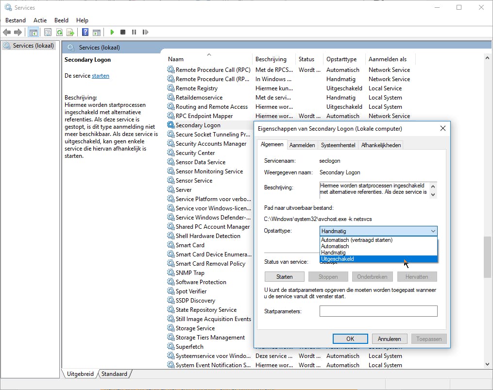 Je kunt deze en dergelijke services in- en uitschakelen via een ingebouwde Windows-module, die je opstart door Windows-toets+R in te tikken en het commando services.msc uit te voeren. Vervolgens klik je een service met de rechtermuisknop aan, kies je Eigenschappen en duid je bij Opstarttype het gewenste type aan, zoals Automatisch, Handmatig of Uitgeschakeld.