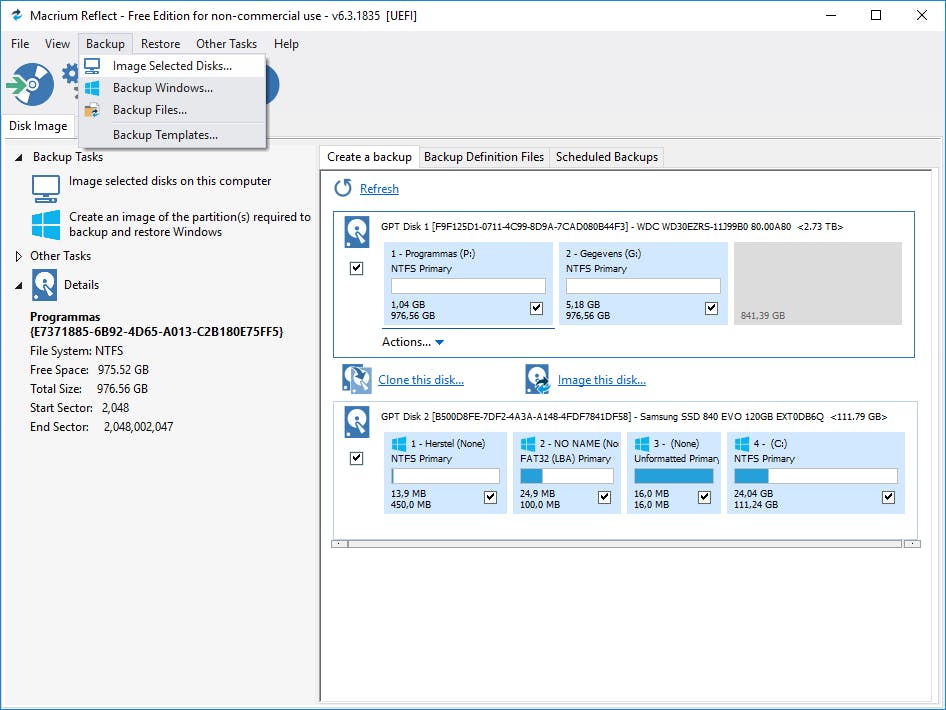 Afhankelijk van hoe ver je wilt meegaan op onze ‘Fort Knox-tocht’, kan het gebeuren dat je bepaalde (systeem)instellingen wilt terugschroeven maar het niet helemaal meer goed ingesteld krijgt. Daarom raden we je aan om een compleet systeemimage te maken voordat je begint met je experimenten. Als het dan écht mis is gegaan, kun je terug. Zo’n systeemimage kun je bijvoorbeeld met het gratis Macrium Reflect maken. Tijdens de installatie krijg je de gelegenheid WinPE te downloaden (circa 850 MB) zodat hiermee je systeem nog via een live-medium kunt opstarten als Windows geen kik meer geeft. Start je Macrium Reflect de eerste keer op, dan wordt trouwens meteen aangeraden zo’n Rescue Media te creëren (op cd/dvd of usb-stick). Een image maken is nauwelijks moeilijker dan het menu Backup te openen, Image Selected Disks te kiezen (waarbij je best alle schijfpartities aanduidt) en de verdere stappen te volgen. Een image terugzetten doe je vanuit het Menu Restore / Browse for an image file to restore – of desnoods vanuit je live-medium.