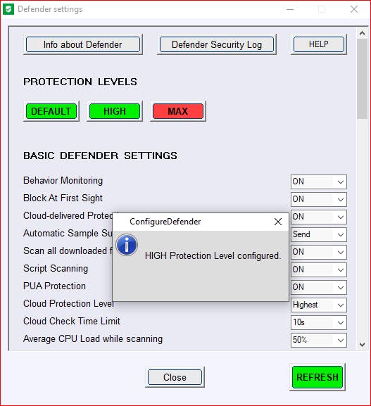 Kies je voor Max, dan worden niet alleen alle (geavanceerde) beveiligingen van Windows Defender ingeschakeld, maar wordt ook de app Windows-beveiliging ontoegankelijk gemaakt. Hierdoor zijn aanpassingen alleen nog makkelijk door te voeren via ConfigureDefender. Houd er wel rekening mee dat deze keuze wellicht meer valse positieven op zal leveren.