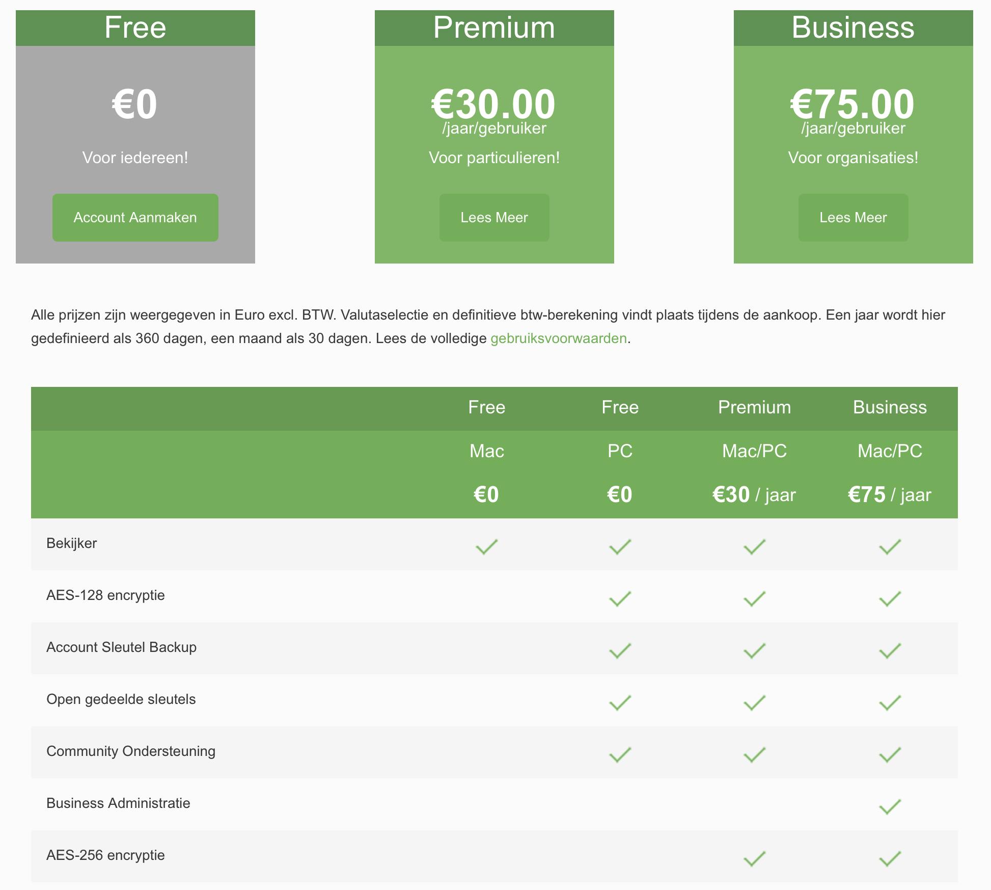 De reputatie van AxCrypt is geruststellend goed. Deze beveiligingssoftware is van oorsprong een Zweeds opensource-project dat sinds 2001 ieder jaar beter is geworden. Momenteel bestaat AxCrypt niet alleen voor macOS, Linux en Windows, er is ook een Android- en iOS-versie. De sterkte van versleuteling zit hem in het algoritme. Hoe geavanceerder dat is, hoe moeilijker de bescherming te kraken valt. De basisversie van AxCrypt blijft gratis maar die versleutelt bestanden ‘maar’ met een 128bit-aes-sleutel. Sterk genoeg om bestanden te beschermen tegen huisgenoten, collega’s en eventueel geveltoeristen die met je pc aan de haal gaan. Wil je een veiligere 256bit-aes-encryptie en een geïntegreerde tool die wachtwoorden genereert, dan is er de premiumversie die 30 euro per jaar kost.