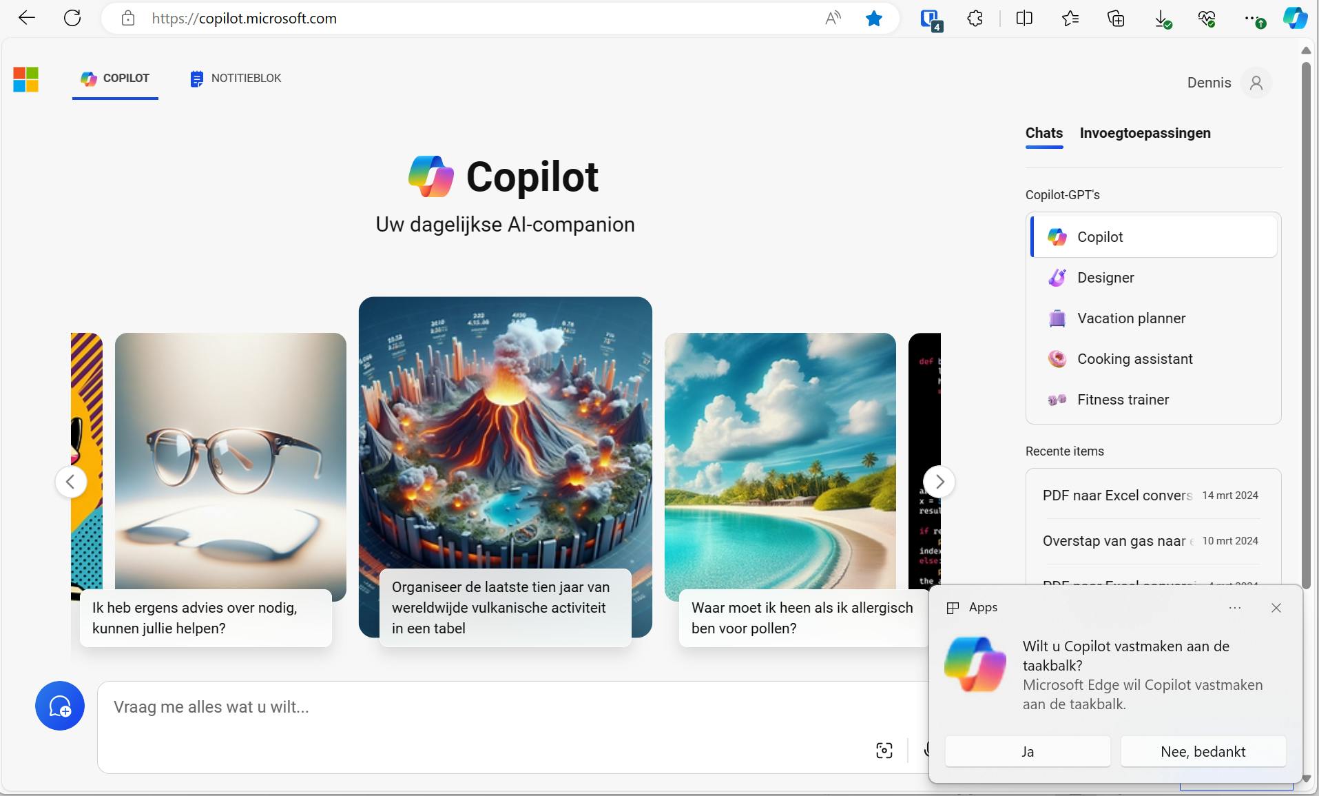 In de toekomst heb je snel toegang tot Copilot via de taakbalk, zodat je niet meer afhankelijk bent van de browser. Maar wie slim is, bouwt deze functionaliteit nu alvast handmatig in. Open Edge en ga naar https://copilot.microsoft.com. Van deze website maken we nu een web-app, zodat je met een enkele klik via het startmenu en/of de taakbalk de website kunt openen. Klik in Edge rechtsboven op de knop met de drie puntjes (Instellingen en meer). Kies nu Meer hulpprogramma’s / Aan taakbalk vastmaken. Bevestig met een klik op Ja. Je kunt de AI-functie ook eenvoudig toegankelijk maken via het Windows-startmenu. Kies dan voor Vastmaken aan startscherm.