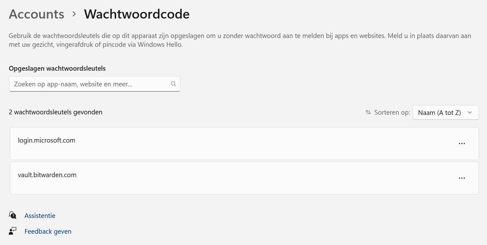 Steeds meer websites en diensten bieden de mogelijkheid om je aan te melden zonder wachtwoord. In plaats daarvan maak je gebruik van een passkey. Dat werkt met gezichtsherkenning of vingerafdrukherkenning. De dienst bewaart een publieke sleutel voor je, terwijl je zelf de privésleutel bewaart. Windows 11 biedt sinds kort ook ondersteuning voor passkeys. Opgeslagen passkeys beheer je via de Windows-instellingen (Windows+I). Kies voor Accounts / Wachtwoordsleutelinstellingen. Een overzicht van de opgeslagen wachtwoordsleutels verschijnt. Ongebruikte sleutels kun je verwijderen: klik op de drie puntjes (...) en kies Wachtwoordcode verwijderen.