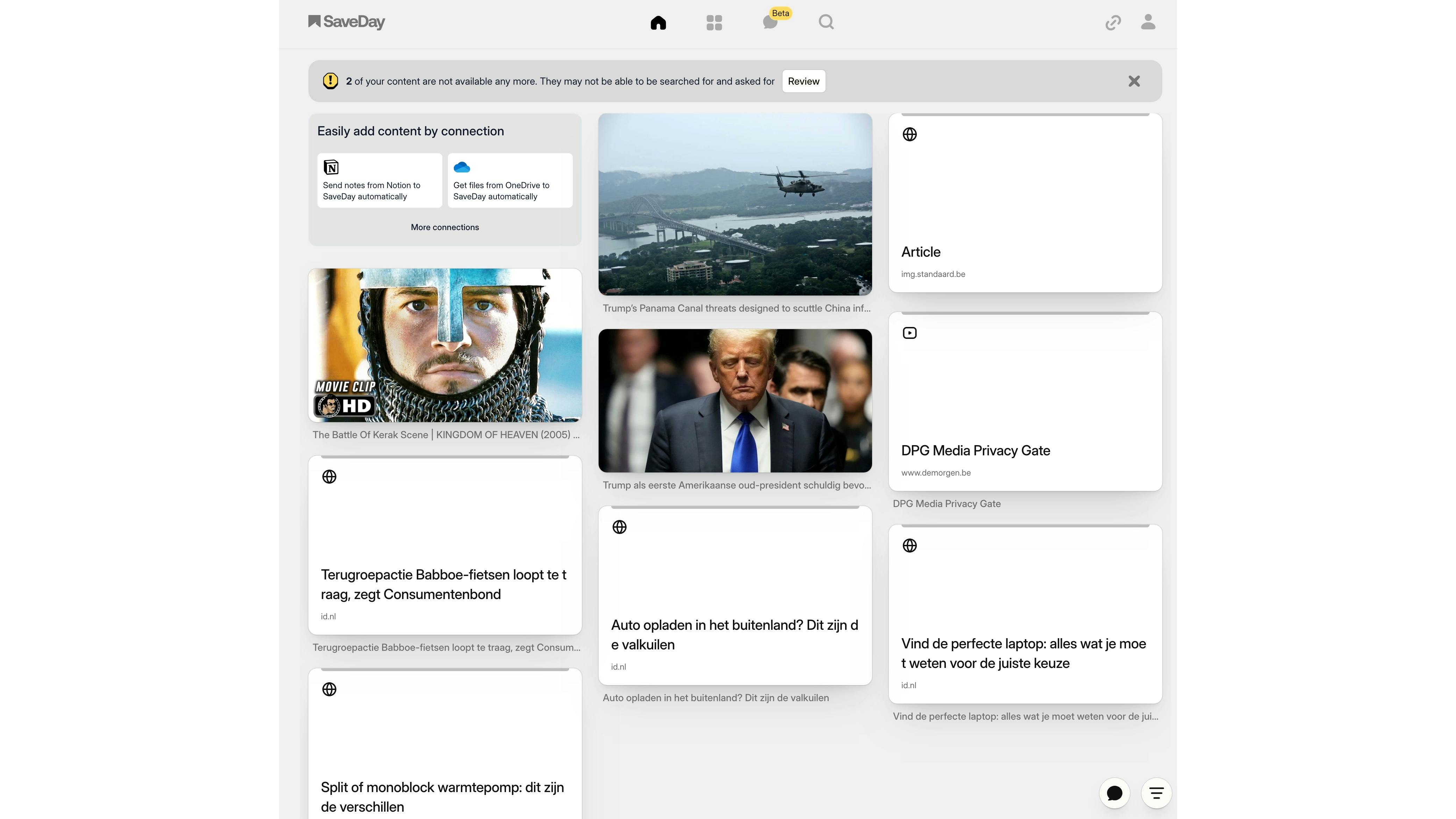 Ook SaveDay waarschuwt wanneer webbronnen niet langer bereikbaar zijn.