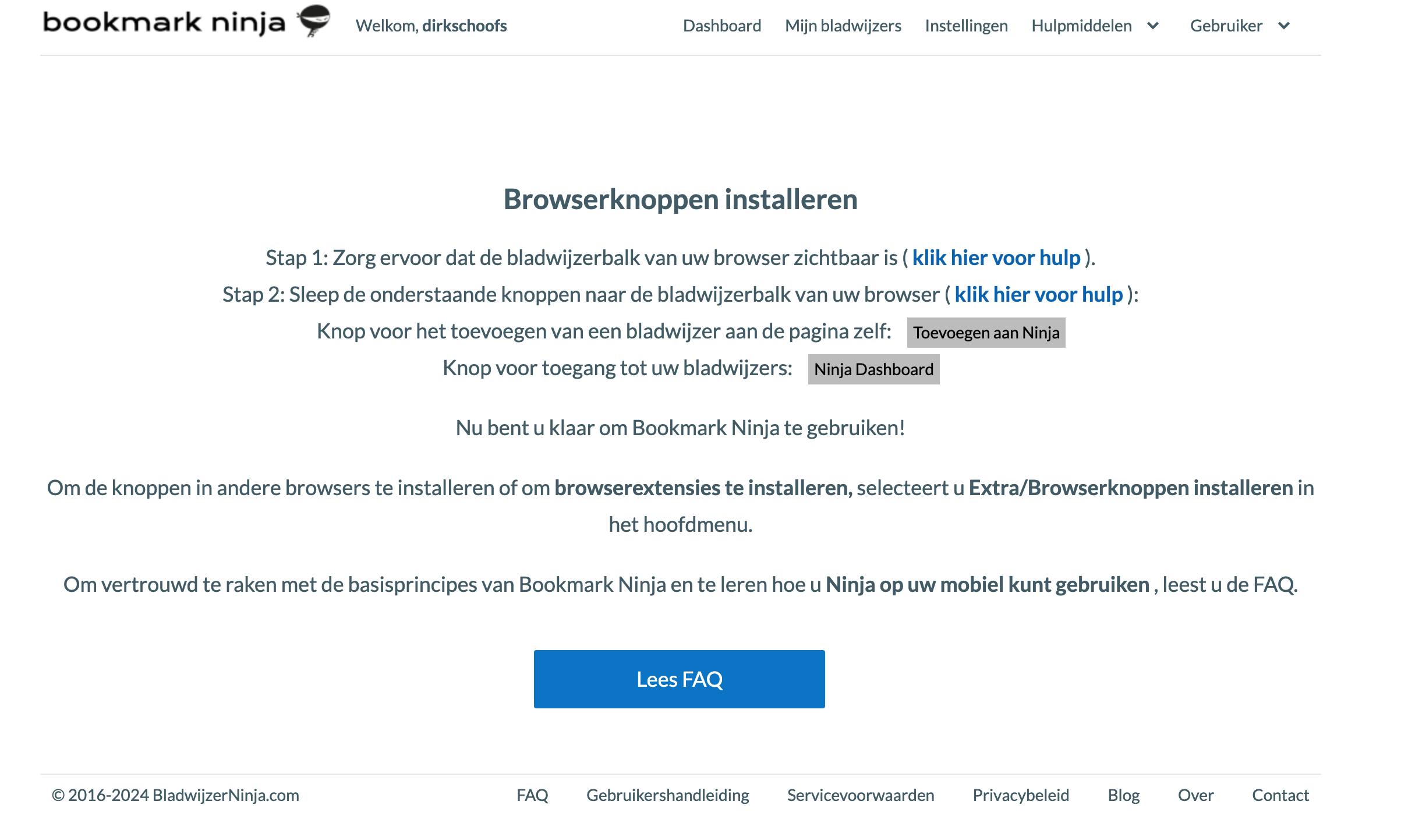 Een stevige concurrent is Bookmark Ninja. Er is geen gratis versie, de toepassing kost ongeveer 2 euro per maand. Je mag Bookmark Ninja wel dertig dagen kosteloos proberen. Je hoeft hiervoor niets te installeren. Nadat je bent ingelogd, sleep je gewoon je twee knoppen (bookmarklets) naar de bladwijzerbalk. De ene knop is om bladwijzers toe te voegen aan Bookmark Ninja, de andere om het dashboard te openen.