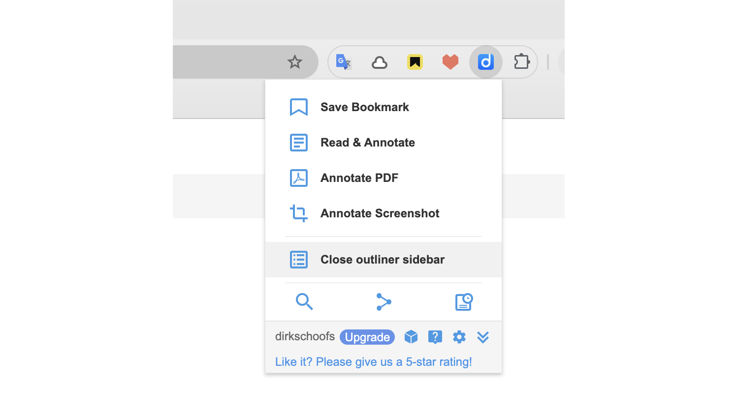 Daarnaast is er de functie My outliners waar je in een gesplitst scherm tegelijk het overzicht en de content bekijkt. Een andere functie is My groups, ontworpen als collaboratieve onderzoeks- en leertool. In de gratis versie mag je vijfhonderd bladwijzers beheren (met reclame), de standaardversie kost ongeveer 38 euro per jaar.