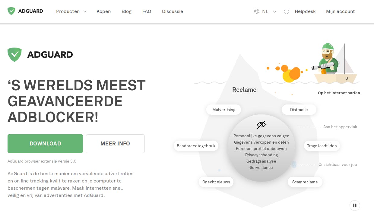 Het bedrijf AdGuard Software biedt allerlei producten aan om advertenties te blokkeren en je privacy te beschermen. Het basisproduct is de opensource AdGuard-browserextensie voor Chrome, Firefox, Opera, Edge en Safari die advertenties en trackers blokkeert.