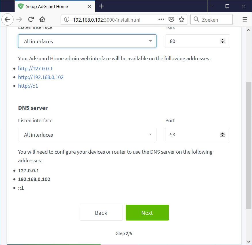 Na deze configuratie installeer je AdGuard Home als volgt: