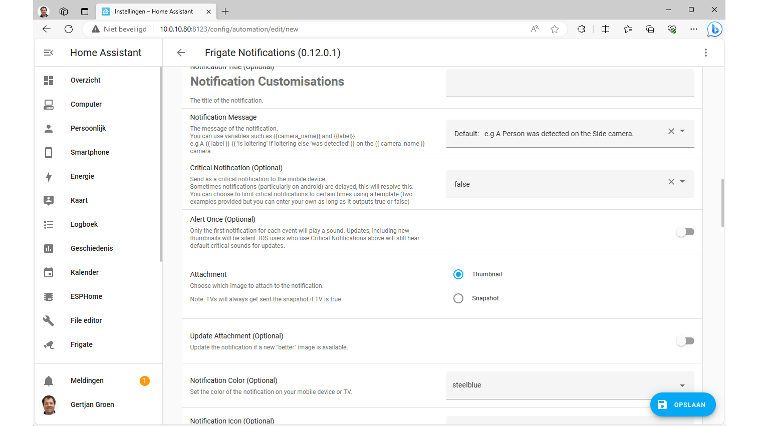 Voor cameradetectie zijn ook nuttige blueprints. Zo is er een blueprint die bij detectie van beweging een notificatie naar je smartphone stuurt met het beeld van de camera. Voor de software Frigate, dat je op ID.nl vindt via deze link, bestaat een zeer uitgebreide blueprint.
