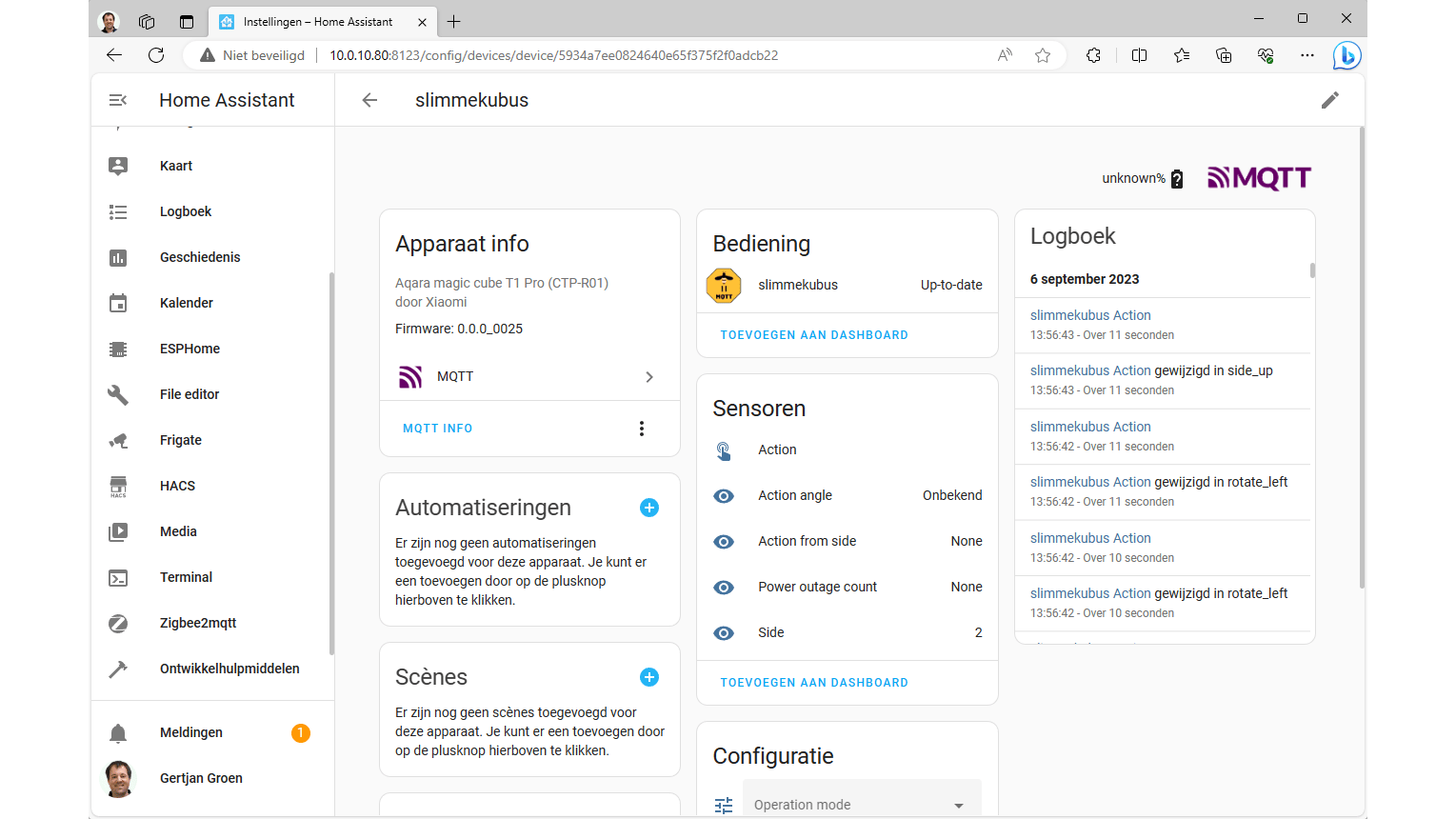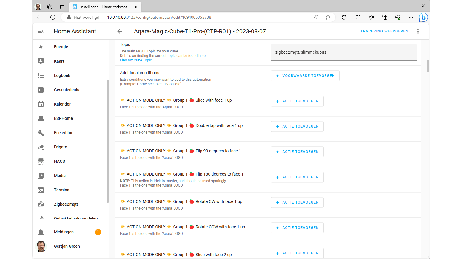 De kubus werkt met Zigbee 3.0 en kun je in Home Assistant koppelen via Zigbee2MQTT of ZHA. Het kan wel een uitdaging zijn om acties te programmeren. De blueprint is daarom een enorme hulp voor dit accessoire. Met de blueprint kun je uit meer dan 58 unieke commando’s kiezen welke acties moeten worden uitgevoerd. Op elke zijde van de kubus staat overigens alleen een nummer. Het kan daarom zinvol zijn om hier stickers op te plakken die laten zien welke toepassing je zelf voor die zijde van de kubus hebt bedacht.