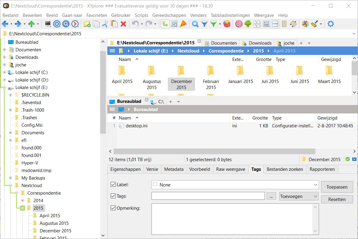 Helaas heeft de verkenner maar zeer beperkte mogelijkheden om effectief je je brieven en bonnetjes te beheren. Naast plug-ins zoals in de vorige tip kun je ook kijken naar alternatieven, zoals bijvoorbeeld XYPlorer. Met dat programma heb je de mogelijkheid om bestanden in een kleurcategorie te plaatsen en om alle bestanden te labelen (Windows Verkenner kan alleen bepaalde bestandsformaten labelen). Je kunt ook virtuele collecties maken, zoekresultaten opslaan en het kan je helpen met herhalende taken. Dit programma kost 40 dollar, dat is ca. 34 euro. Een andere mogelijkheid is Directory Opus 12, daarmee kun je ook labelen en categoriseren op kleur. Directory Opus heeft een gratis versie beschikbaar met beperkte functionaliteiten.
