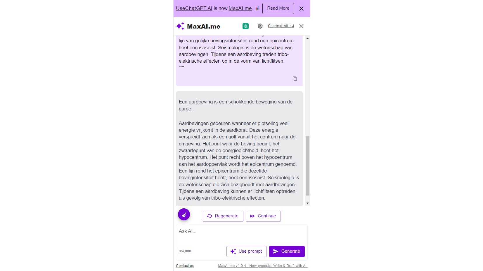 Daarnaast is er de extensie MaxAI.me, die niet alleen tekst kan genereren, maar ook eigen tekst kan verbeteren, schrijfstijlen kan aanpassen, samenvattingen kan maken en controle kan uitvoeren op mogelijke spel- en grammaticafouten, en vertalingen kan uitvoeren. Het enige wat je hoeft te doen, is een stuk tekst op een willekeurige webpagina markeren en de gewenste instructie selecteren. Deze tool biedt ondersteuning voor verschillende talen en maakt gebruik van onder andere ChatGPT, Bing AI en Bard.