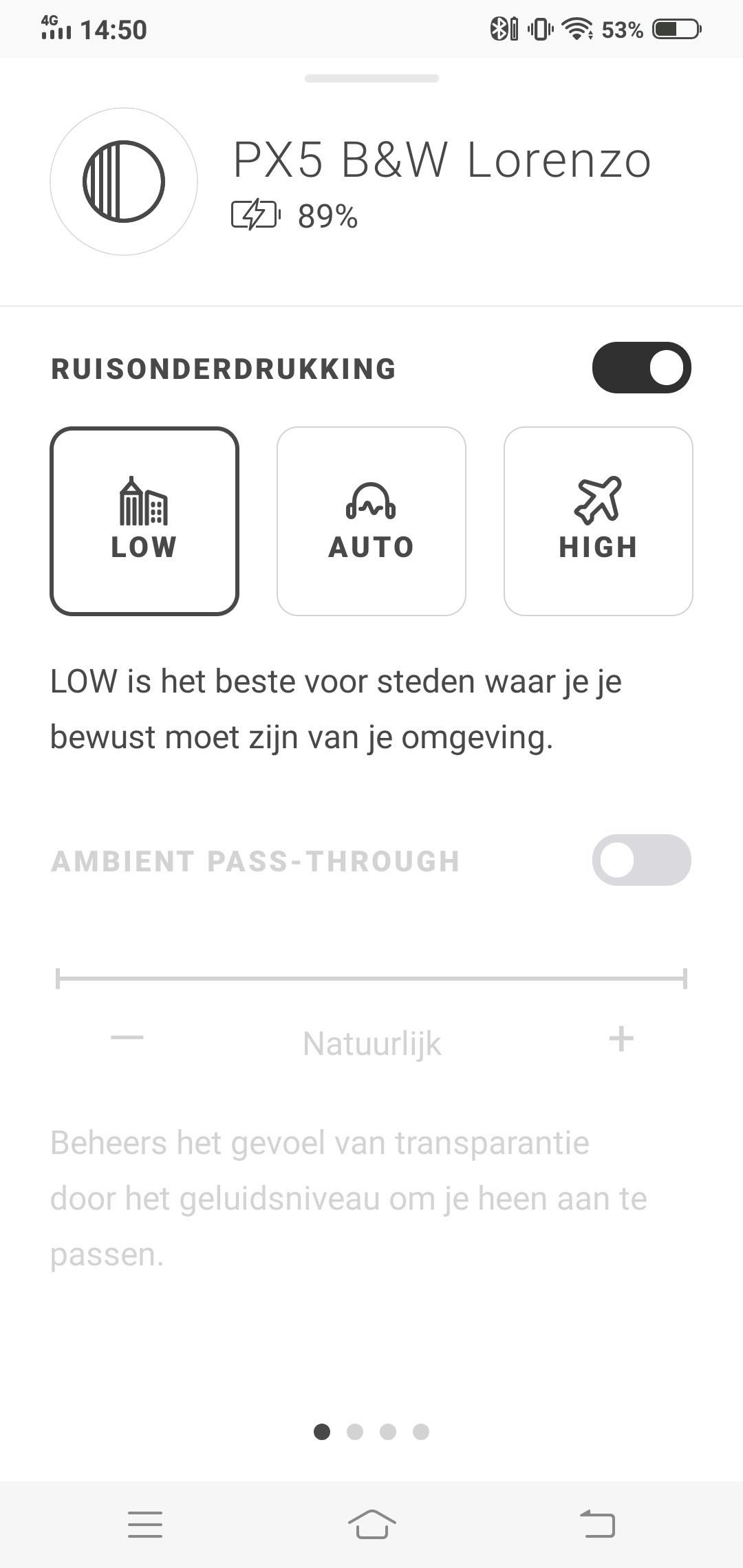 Een leuke feature is de Ambient Pass-Trough. Deze modus maakt het mogelijk om nog goed je omgevingsgeluid te horen. Erg handig wanneer je een drukke straat wilt oversteken of de stemoproepen in het openbaar vervoer wilt horen.