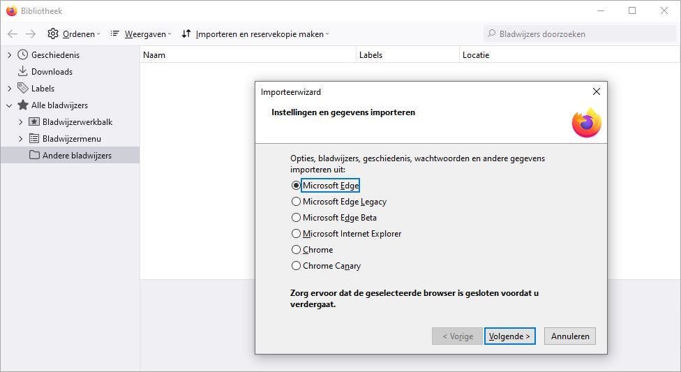 Browserfavorieten importeren in Chrome, Edge en Firefox