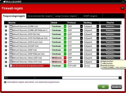Toch weet ook Bullguard niet te voorkomen dat de gebruiker met technische termen in aanraking komt en lastige keuzes moet maken. Krijgt een programma toegang tot het internet dan meldt de firewall dat “een DLL-bestand als toepassing starten werd automatisch toegang verleend tot het internet”. De knop Meer info vertelt dan nog dat het “rundll32.exe” is die de toegang kreeg, maar welk programma echt, dat weet u nu nog altijd niet.