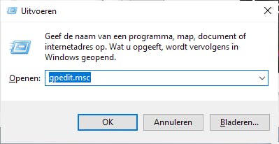 Om die te zien, gebruik je de Windows-toets+R en daarmee open je Uitvoeren. In het venster Uitvoeren typ je gpedit.msc. Druk dan op Enter of klik op OK. Hiermee open je de Editor voor lokaal groepsbeleid.