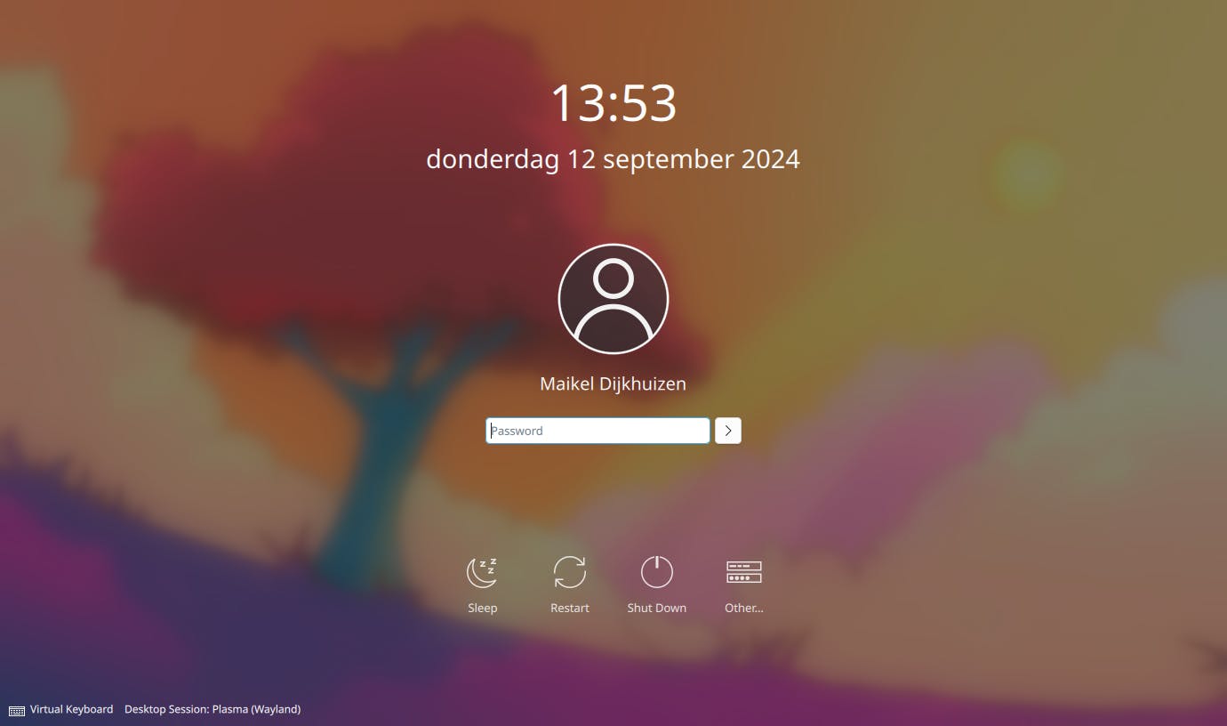 Als de installatie is gelukt, start het zojuist geïnstalleerde Linux-systeem voor het eerst op. Typ het wachtwoord om door te gaan naar het bureaublad. Elke keer dat CachyOS opent, verschijnt er een welkomstvenster. Klik dat nog niet weg, want je hebt hiermee snel toegang tot enkele handige onderdelen. Daar gaan we zo dadelijk mee aan de slag.