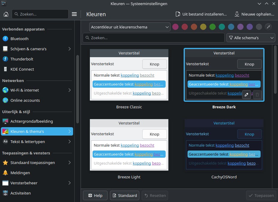 In de Systeeminstellingen pas je talloze zaken naar eigen smaak aan, zoals het kleurenschema.