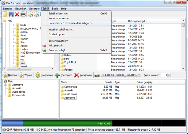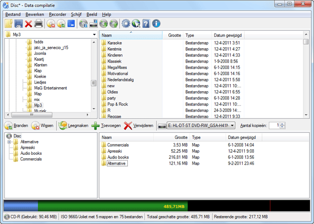 Handig is ook het Dropbox-venster. Dat heeft overigens niets te maken met de gelijknamige online opslagdienst, maar is een klein venster dat op de voorgrond blijft staan, zodat u overal vandaan bestanden kunt slepen die u wilt branden. De interface volgt met z'n Verkenner-venster een beproefd concept (inclusief handige statusbalk zodat u kunt zien hoeveel ruimte er nog is). Wat jammer is, zijn de pictogrammen bovenin. Pictogrammen hoeven niet altijd tekst te hebben, op voorwaarde dat ze duidelijk zijn en in dit geval zijn het bijna allemaal pictogrammen van cd's en dat werkt niet zo lekker. Gelukkig zijn alle opties ook te benaderen via de gewone menu's.