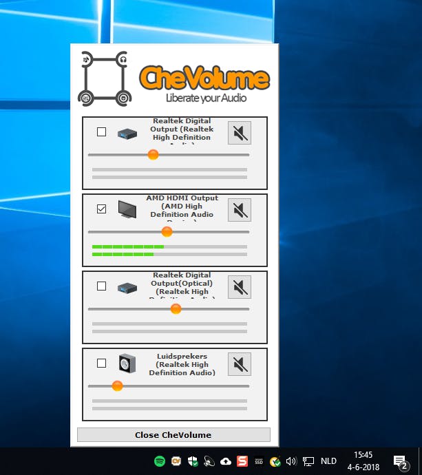 De geluidsinstellingen van Windows 10 vind je op meerdere plekken terug, zoals het menu Instellingen en het Systeemvak. Liever alles vanuit één gebruiksinterface beheren? Misschien is CheVolume iets voor jou. De proefversie van CheVolume probeer je een weekje vrijblijvend uit. Voor de betaalde editie betaal je omgerekend zo’n 20 euro. Zodra je na een korte installatieprocedure het programma opstart, bereik je de instellingen via het CheVolume-pictogram rechtsonder in het Systeemvak.